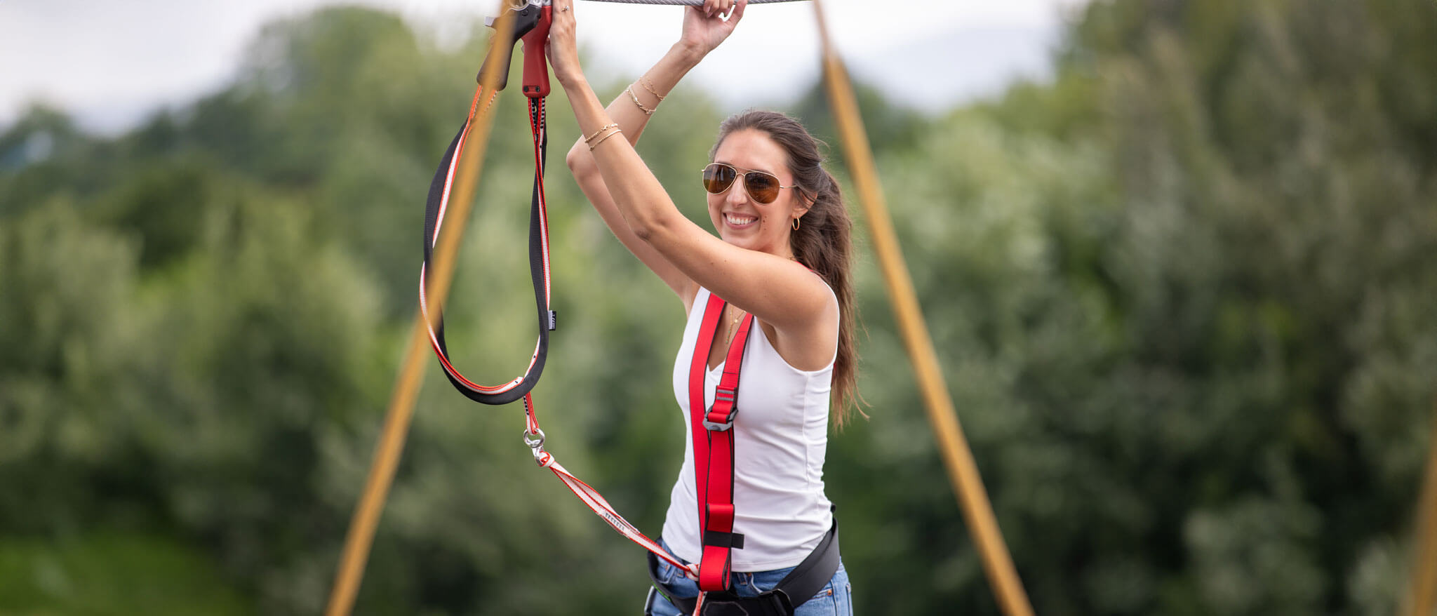 Safety is our top priority at HangDog Outdoor Adventure. All climbing guests wear a full body harness equipped with our clic-it system. Guests will receive a safety briefing on ground where a team member will ensure that their harness is properly secured, followed by safety instructions and demonstrations to help climbers feel confident and safe on the cocurse. Once climbers step foot onto the course they will be clicked in at two points. Our smart system will not fully unclip until the climber has returned to one of the designated entrance/exit points where a team member will support the climber in clicking out and off the course.